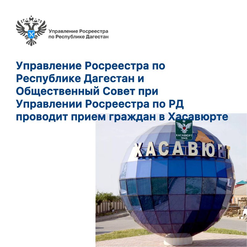 28 ноября 2025 года в 15:00 Управление Росреестра по Республике Дагестан и Общественный Совет при Управлении Росреестра по РД проводит прием граждан и консультирование по вопросам: