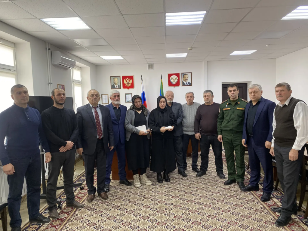 Глава района Давуд Амаевич Сулейманов вместе с военным комиссаром Ахтынского, Докузпаринского и Рутульского районов Акимом Зияудиновичем Ибрагимовым вручили посмертные ордена Мужества родителям наших земляков — Керима Маратовича Махмудова и Шейхэмира Магомеджановича Магомеджанова, погибших в ходе специальной военной операции на Украине.