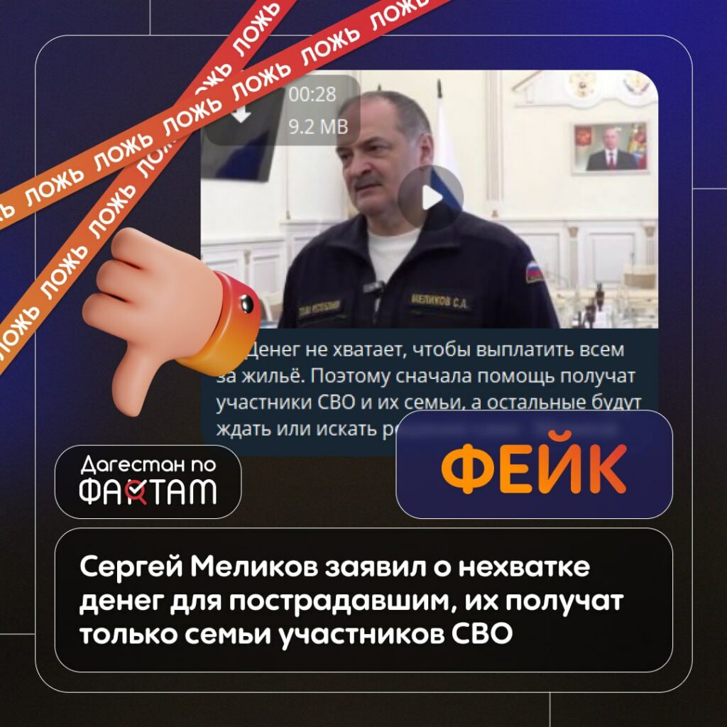В телеграм-каналах распространяется недостоверное видео, где глава Дагестана якобы говорит о нехватке средств и ограничении выплат пострадавшим.