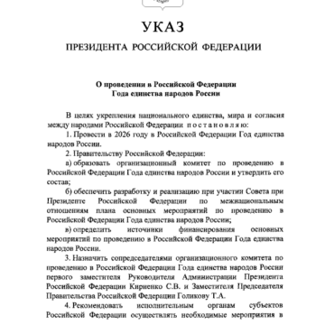 Стратегический курс на единство получил новый импульс: президент Владимир Путин объявил 2026 год Годом единства народов России. Соответствующий указ уже подписан и опубликован, и в нём закреплено начало программы по укреплению гражданского мира и согласия внутри страны. В рамках годовых мероприятий правительство должно оперативно сформировать оргкомитет и определить его состав, а также разработать детальный план...